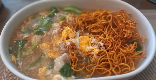 สุดท้ายเลยได้หยุดรถที่ร้าน GLAM & GOMME (อ่านว่า แกรม & กอม) เมนูที่ร้านนี้ มีมากจนอยากที่สั่งมากินทุกอย่าง แต่ด้วยไปกันแค่ 2 คน เลยเอาเท่าที่ไหว เลยตัดสินใจเลือก ราดหน้าหมู (จานอย่างใหญ่) กิน 2 คน ยังได้ ตามด้วยแกรมโรล (เป๊าะเปียะทอด ไส้หมูผสมกุ้ง) มาพร้อมน้ำจิ้ม 3 รส ให้ลิ้มลอง ซอสครีม น้ำจิ้มไก่ และน้ำจิ้มบ๊วย อีกหนึ่งเมนูที่เพื่อนร่วมทางสั่งก็คือ ข้าวผัดสับปะรด มีกุ้ง โรยด้วยถั่วลันเตา เม็ดหัวครก (เม็ดมะม่วงหิมพานต์)