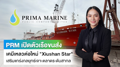 บริษัท พริมา มารีน จำกัด (มหาชน) (PRM) รับมอบเรือขนส่งเคมีเหลวต่อใหม่ "Xiushan Star" ที่มีขนาดระวางบรรทุก 13,800 DWT จำนวน 1 ลำ จากอู่ต่อเรือในประเทศจีน เพื่อให้บริการในธุรกิจเรือขนส่งน้ำมันสำเร็จรูปและเคมีเหลว (Petroleum and Chemical Tanker - PCT) สำหรับลูกค้าในต่างประเทศ โดยเฉพาะกลุ่มลูกค้าศักยภาพในภูมิภาคสำคัญอย่างประเทศ มาเลเซีย และสิงคโปร์ เป็นต้น